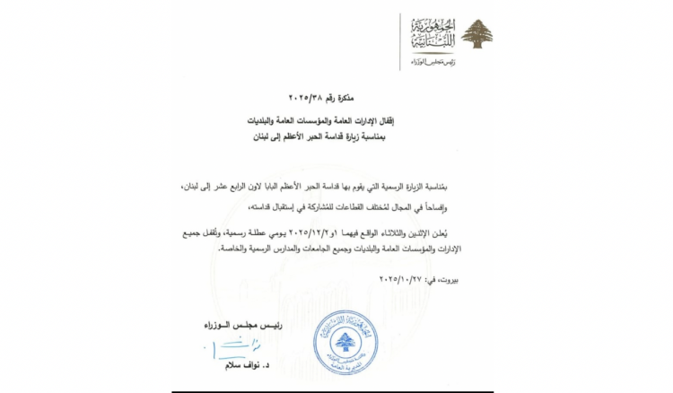 تنظم المديرية العامة للأمن العام عند الساعة السادسة من صباح يوم الأربعاء الواقع فيه التاسع والعشرون من اكتوبر 2025 عبر مركز المصنع الحدودي مع سوريا، المرحلة السابعة من خطة الحكومة اللبنانية المتعلقة بالعودة المنظمة للنازحين السوريين بالتنسيق مع الدولة السورية وبالإشتراك مع منظمة UNHCR وIOM والصليب الأحمر اللبناني ومنظمات إنسانية.