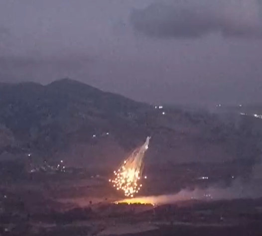 تعرض سهل المجيدية في محيط مزارع شبعا لقصف فوسفوري إسرائيلي.