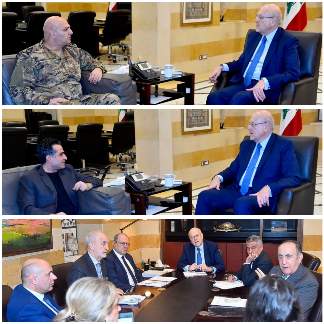 ورأس رئيس الحكومة اجتماعا ضم نائب رئيس الحكومة سعادة الشامي، وزير المال يوسف الخليل، المدير العام لوزارة المال جورج معرّاوي، ومستشار الرئيس ميقاتي الوزير السابق نقولا نحاس، والمستشار الاقتصادي سمير ضاهر.