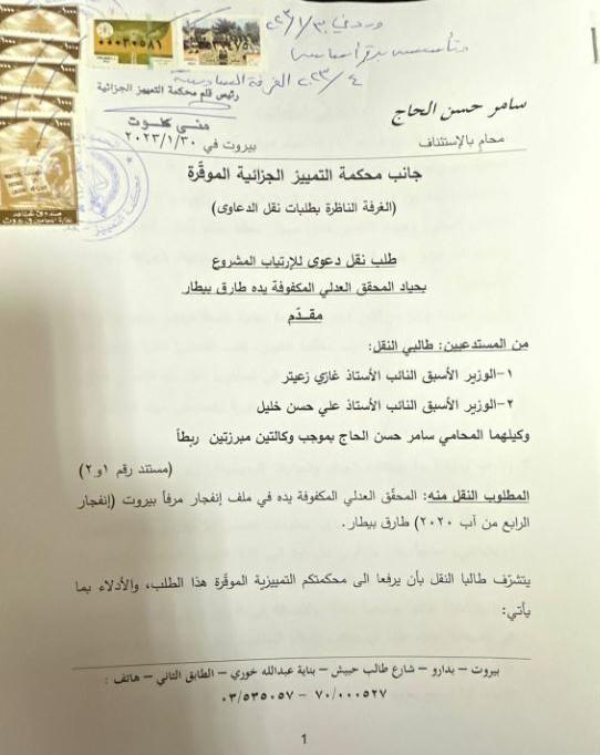 - علي حسن خليل وغازي زعيتر يتقدمان بشكوى جزائية ضد القاضي البيطار2023-01-30 16:30:06
