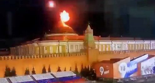 ونشرت (بازا) وهي قناة على تلغرام لها صلات بأجهزة أمنية روسية مقطع فيديو يظهر جسما طائرا يقترب من قبة لأحد بنايات الكرملين الشهيرة المطلة على الساحة الحمراء وبعدها ينفجر هذا الجسم قبل أن يصل.