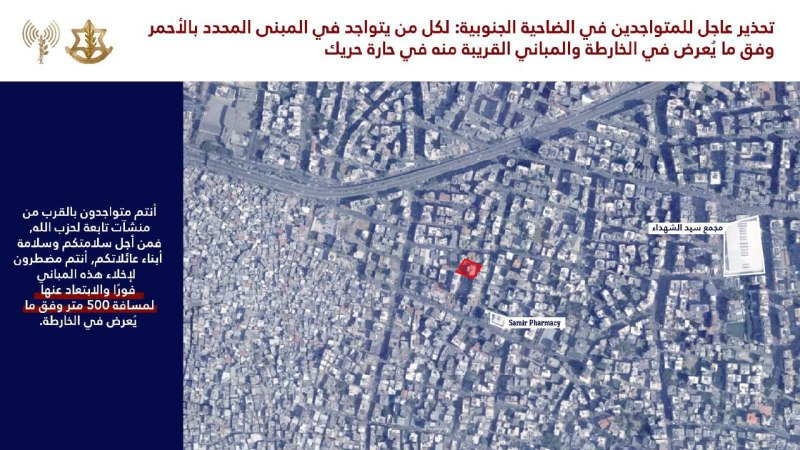 - العدو يصدر تهديدًا لسكان حارة حريك بالإخلاء2024-11-25 10:46:32