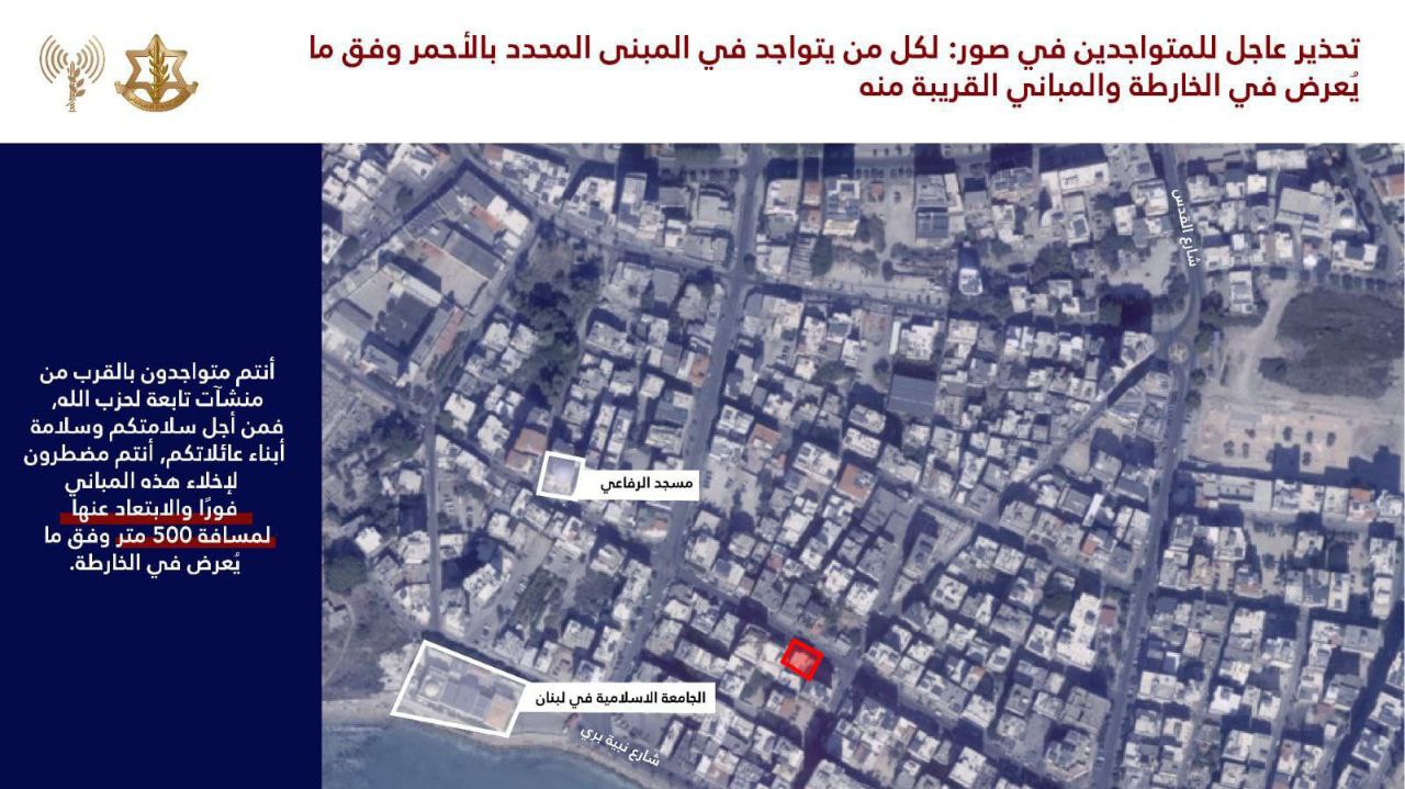 - جيش العدو يوجه انذارًا جديدًا لسكان صور2024-11-22 09:29:27