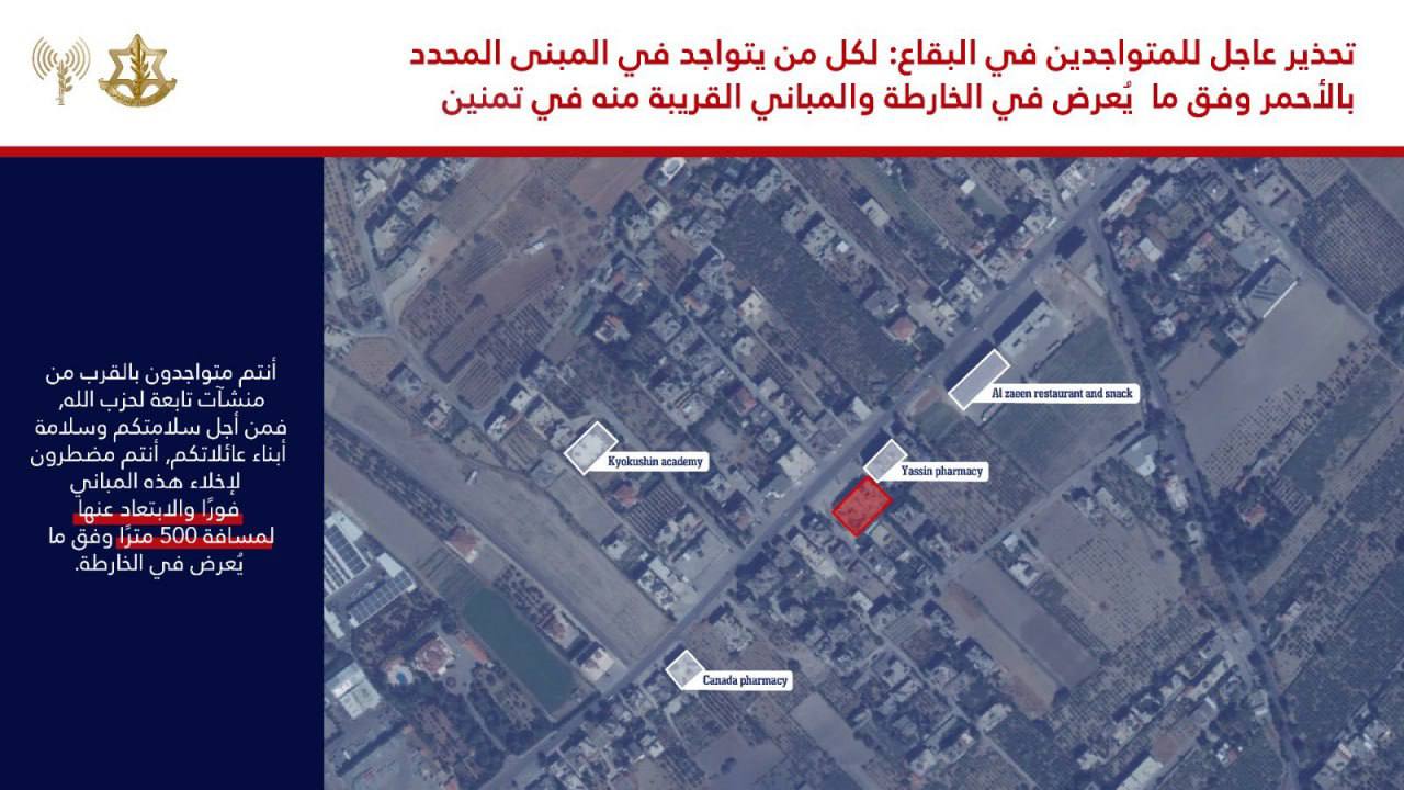 - العدو الإسرائيلي ينذر السكان في تمنين البقاعية بالإخلاء2024-10-17 10:33:52